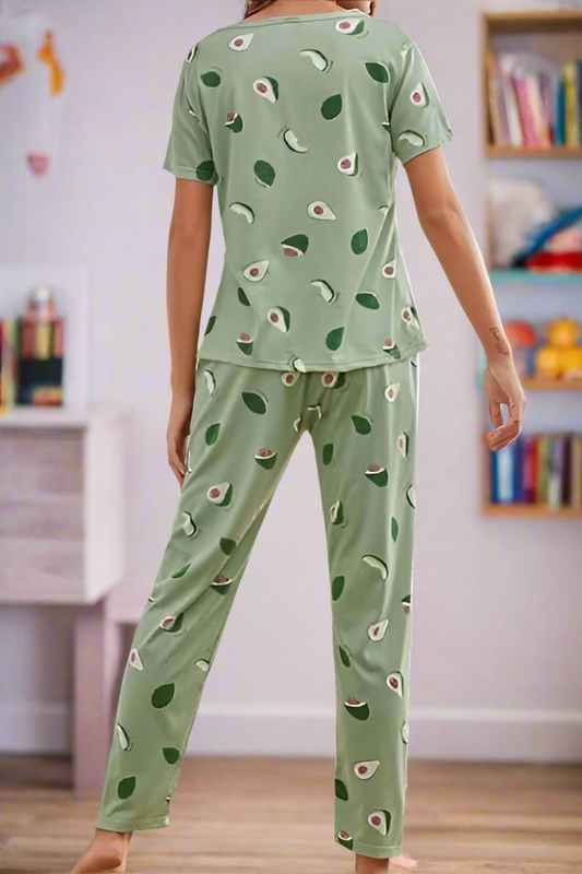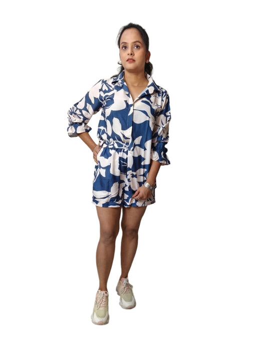 Cotton Floral Top & Pyjama Set – Button-Down Collar, Short Sleeves