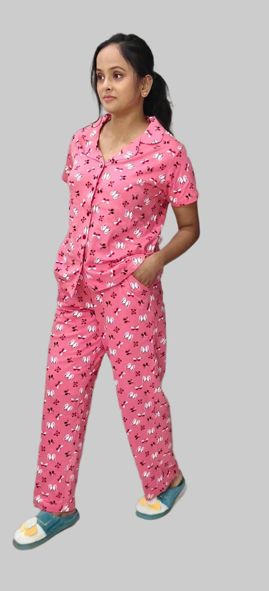 Women’s Cotton Night Suit Set – Printed Top & Shorts with Pockets