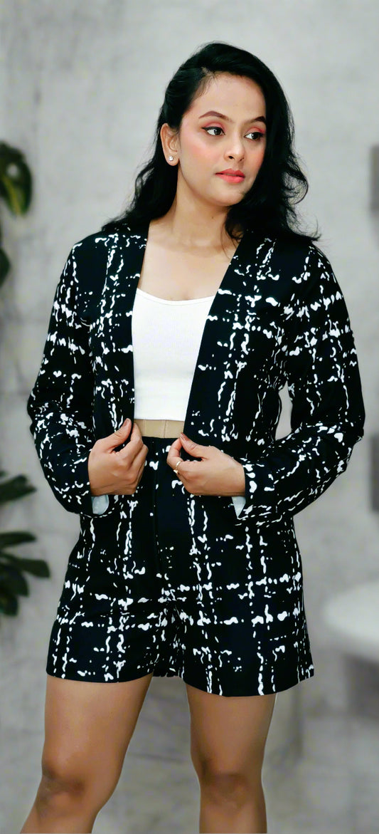 Women’s Cotton Blend Night Suit – Printed Top & Shorts with Pockets