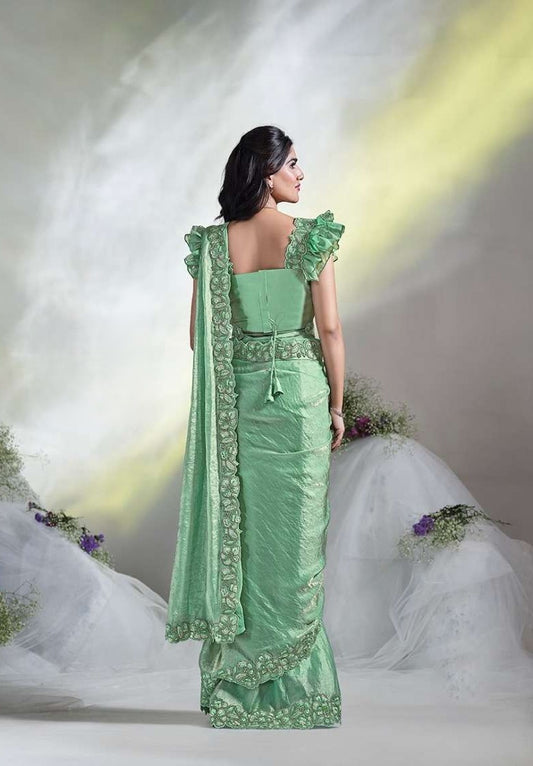 Pastel Green Heavy Embroidered Designer Ready-to-Wear SareeRegular price $259.99 NZDRegular priceUnit price per-