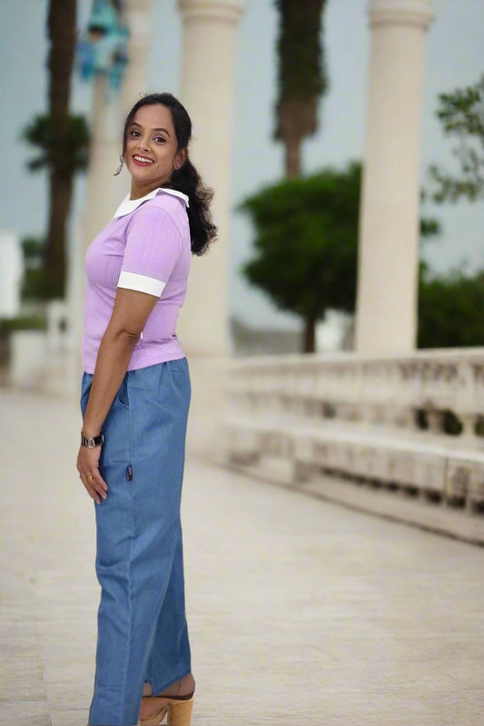 Stylish Denim Palazzo Pants with Elastic Waistband