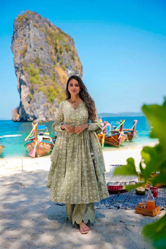 Emerald Green Floral Chinon Exclusive Plus Size Designer Embroidered Suit Sets!